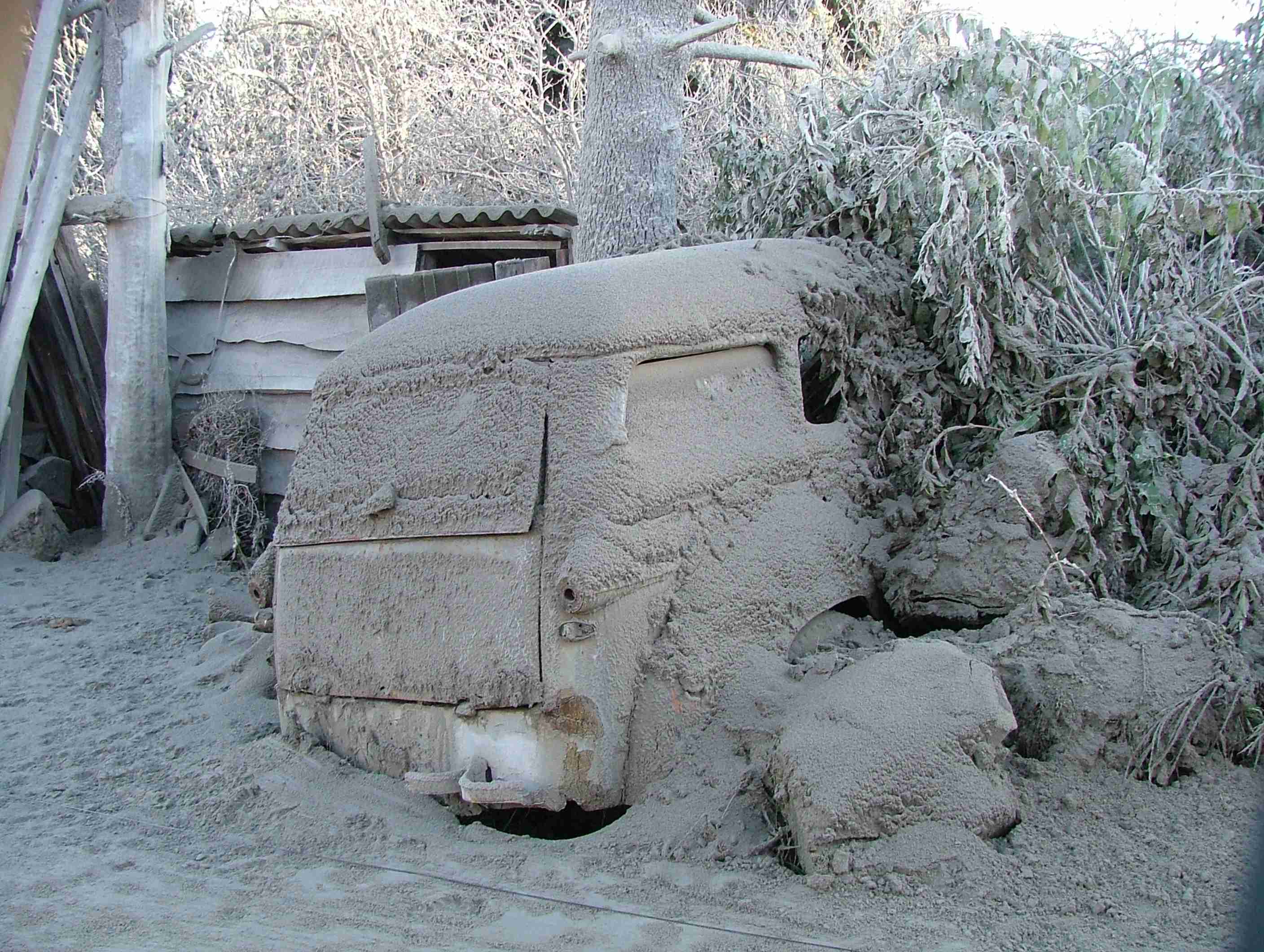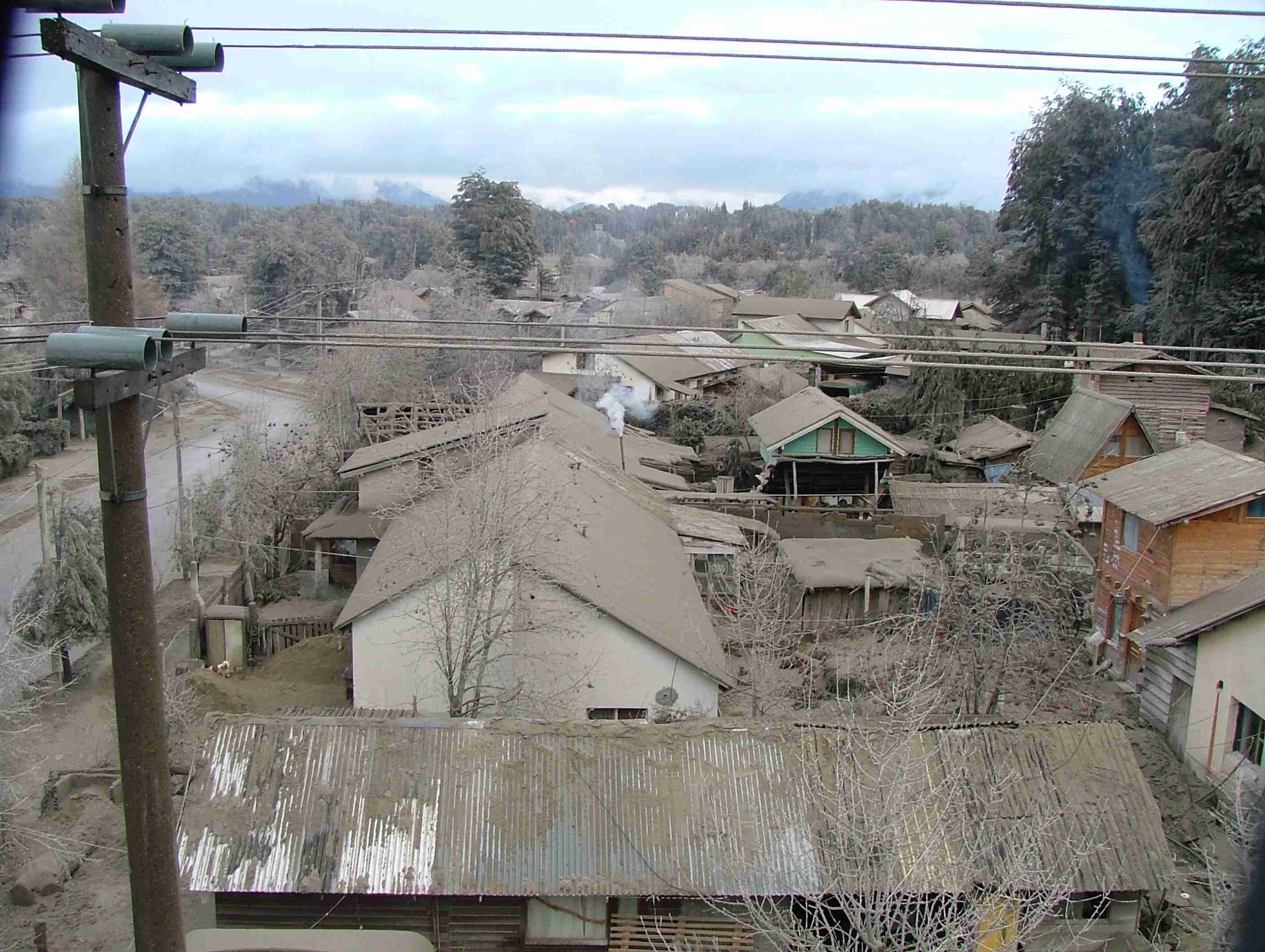 Se estima que unos 5 millones de metros cúbicos de arena y cenizas volcánicas cayeron sobre el ejido urbano, dejando un promedio de entre 25 y 30 centímetros. Para dar un equivalente de lo crítica de la situación, cada lote - que en la localidad tienen en promedio 1.000 metros cuadrados- tenía el equivalente a unos 16 camiones volcadores de arena y ceniza volcánica.