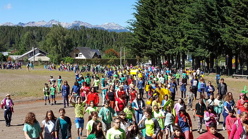 Se trata de los alumnos de los Jardines de Infantes y escuelas primarias de nuestra localidad que, identificada cada institución con un color, primero marcharon cantando y bailando al son de una murga por la avenida Arrayanes para terminar el recorrido en el playón del CEF n° 7.