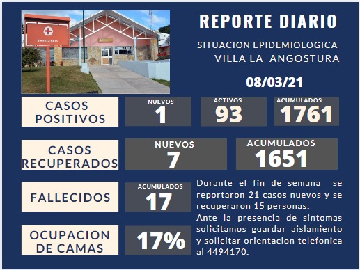 Así lo informó el hospital Dr. Oscar Arraiz este lunes por la tarde donde se aclara que son 93 los casos activos en Villa la Angostura.