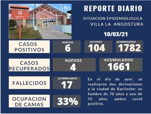 Así lo informó el hospital Dr. Oscar Arraiz en su parte de este miécoles por la noche. Son 104 los casos activos en Villa la Angostura.