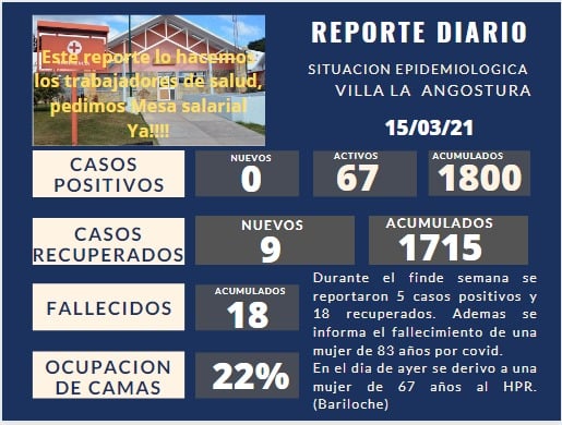 Así lo informó el hospital local en su reporte de este lunes. Durante el fin de semana se registraron 5 nuevos contagios y además, incluyendo este lunes, 27 pacientes fueron dados de alta.