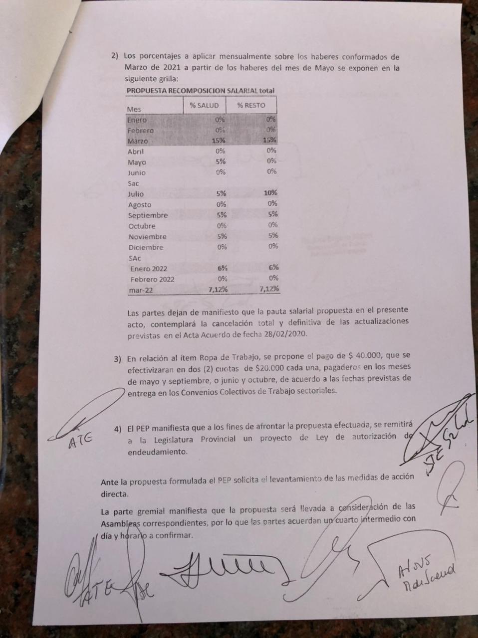La propuesta estructura aumentos cada dos meses. El acuerdo general es hasta marzo de 2022. El acuerdo contempla beneficios específicos para los trabajadores del sector Salud y alcanzará al sector pasivo.