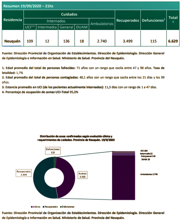 Los fallecidos fueron un varón de 75 años de Senillosa y una mujer de 86 años de la ciudad de Neuquén. Los contagiados en la provincia desde que se inició la pandemia son 6.629