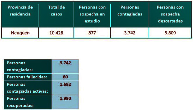 Así lo informó el ministerio de Salud de la provincia. Ademas se produjo una nueva muerte, la número 60 desde desde el inicio de la pandemia. Era vecino de Plaza Huincul.