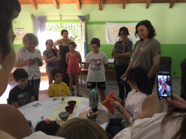 Rocío explicó e hizo una demostración de la ceremonia del té y Verónica les explicó sobre arreglos florales, la apreciación de cada flor, la vivencia interior que produce seleccionar la flor y colocarla amablemente en el florero “que disfrutaremos interiormente de su belleza”.