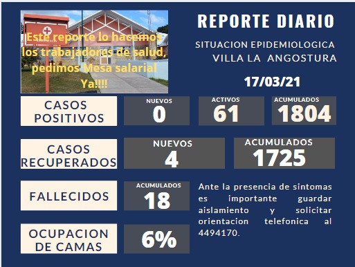 Así lo destaca el nuevo parte del hospital Dr. Oscar Arraiz este miércoles por la tarde. Son 61 los casos que aún se mantienen activos en Villa la Angostura.