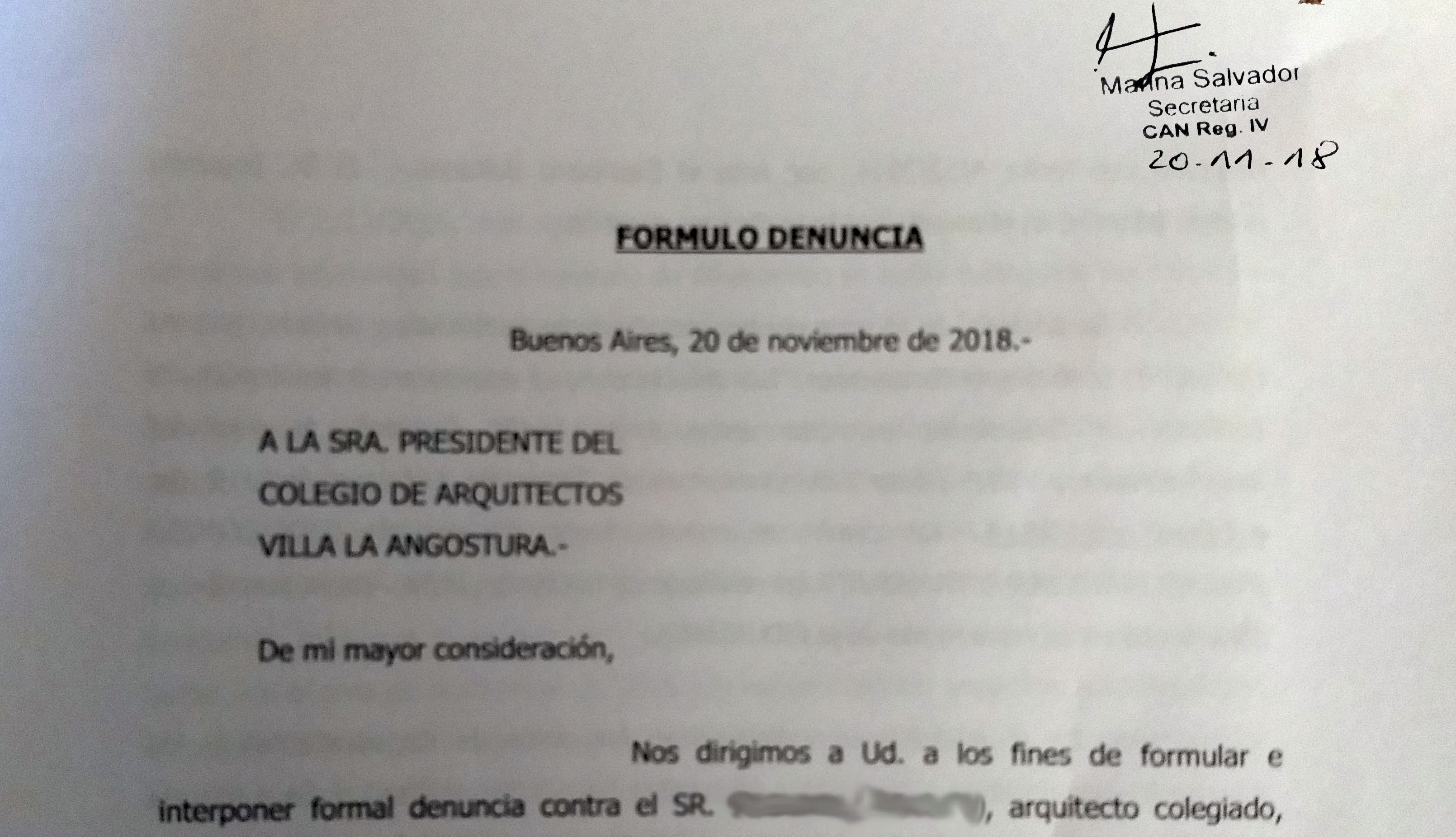 Viviana Bitulka realizó la queja también sobre su situación en el Colegio de Arquitectos y expresa "como residentes seguimos permitiendo que nada se controle o que nada se verifique".