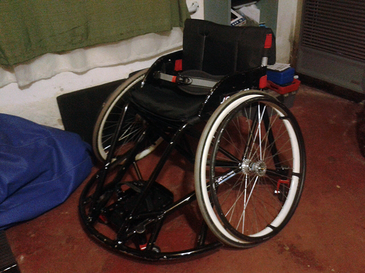 Tardo un poco pero al fin acá está, mi silla de básquet. Desde ahora voy a poder practicar este deporte con la silla adecuada y expectativas de poder hacerlo de la mejor manera posible.