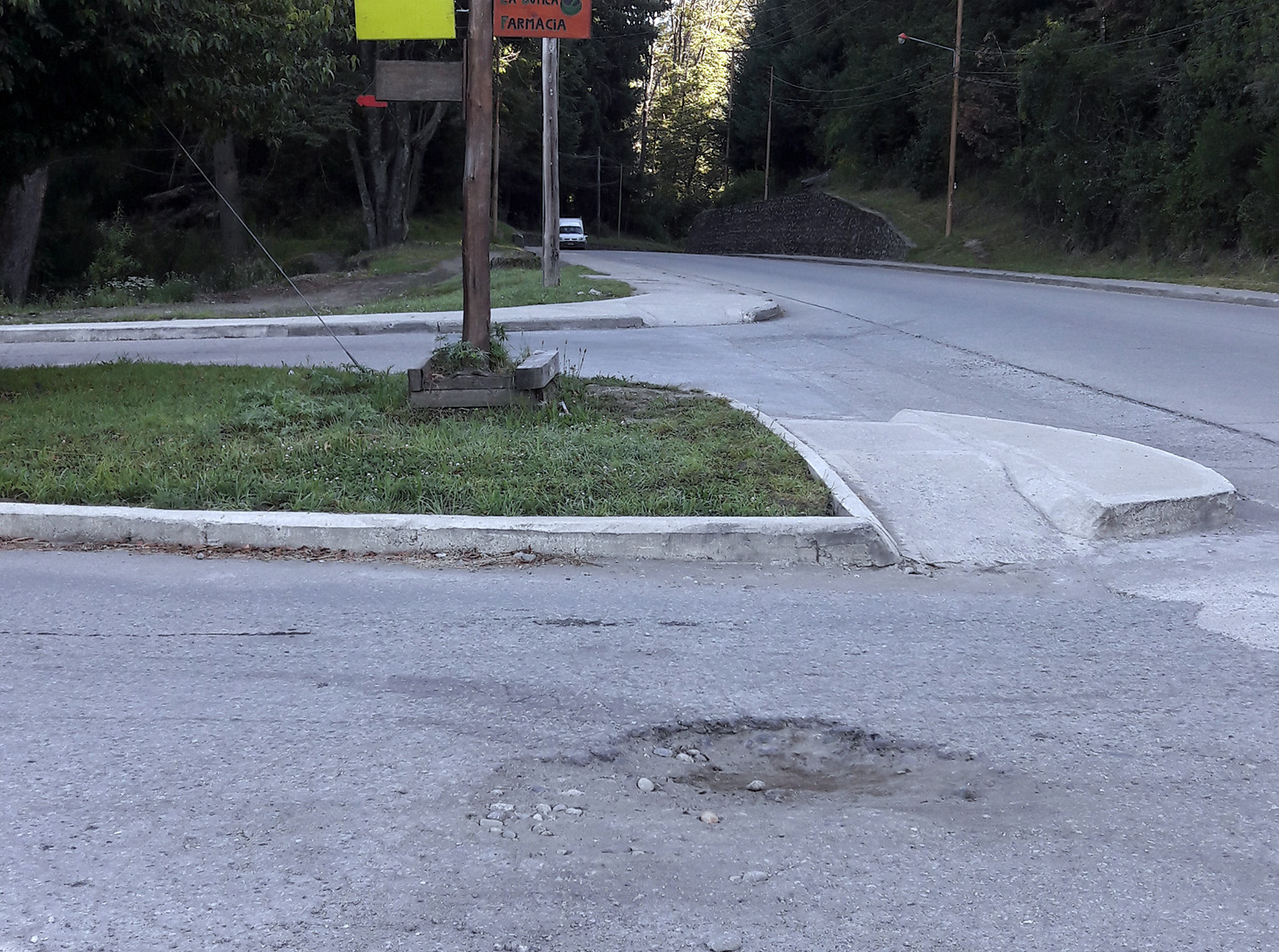 La alegría fue pasajera pues con esa obra solo se reparó el acceso desde el Boulevard Nahuel Huapi y a pesar de ello, parece que la tarea no incluía un bache a mitad del derivador de salida. Uno puede pensar que los trabajadores no lo vieron, que no les alcanzó el material para repararlo o simplemente que lo dejaron como un recuerdo del pasado. No lo sabremos nunca, pero si vemos que cada día el bache aumenta de tamaño.