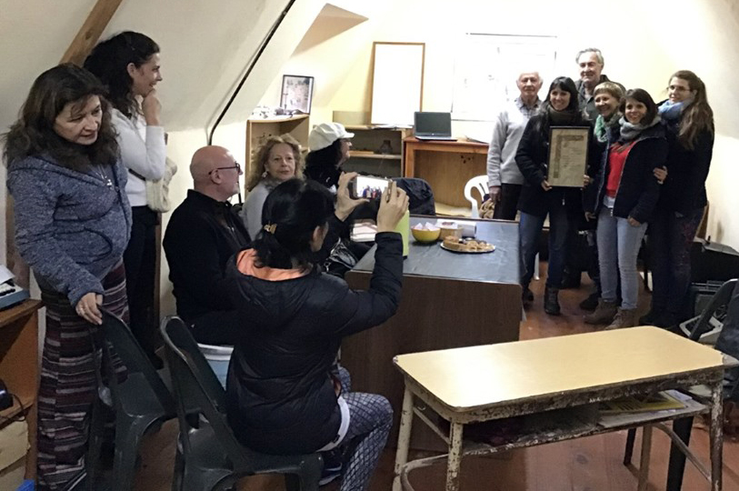 La familia del Dr. Carlos Gustavo Behnisch, su hija Cristina y sus nietas, donaron al Museo Histórico Regional el pergamino que le entregaran los vecinos de la localidad como reconocimiento a su tarea desarrollada en el lugar.