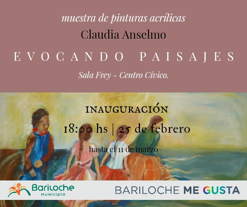 "Evocando paisajes", muestra de Claudia Anselmo que en esta oportunidad se exhibirá en la Sala Frey, en el Centro Cívico. La inauguración será el lunes 25 de febrero a las 18 hs. La muestra podrá visitarse hasta el 11 de marzo.