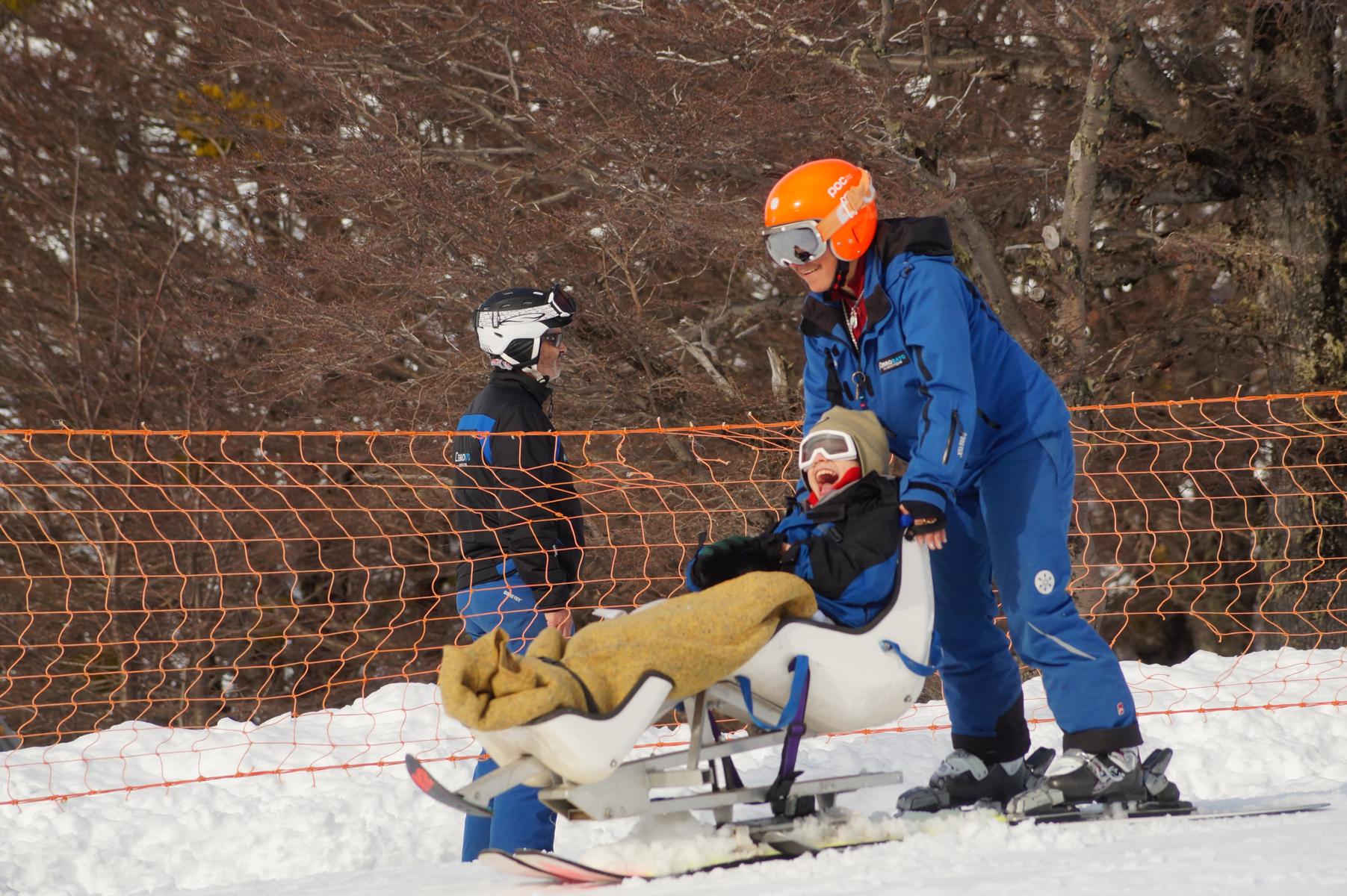 Instructores capacitados en la modalidad de esquí adaptado, llevan a cabo la instrucción en dos modalidades, para personas que puedan esquiar de pié, ayudados por un instructor con punteras, separadores o riendas y la opción sentado, para quienes no pueden mantenerse en pié, con un mono esquí, acompañado de un instructor.