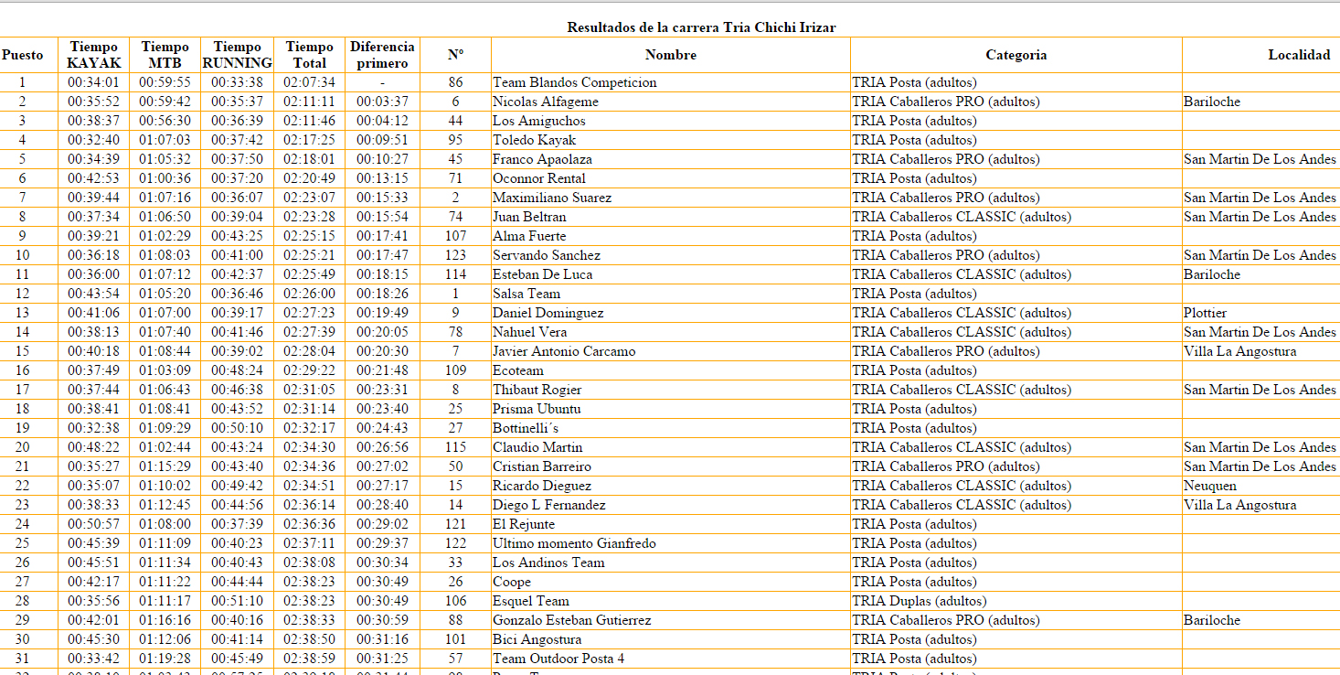 En individuales ganó Nicolás Alfageme y Los Amiguchos TRIA Posta en adultos. Clasificación final y galería de fotos.