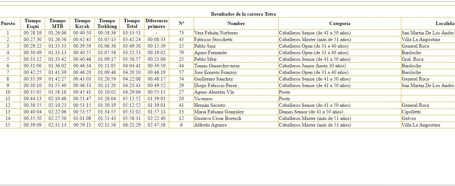 El atleta de San Martín de los Andres hizo un tiempo de 3 horas 33 minutos 33 segundos, segundo resultó en la general el angosturense Fabricio Stocchetti y tercero Pablo Saiz de General. Roca. Clasificación final y galería de fotos de ganadores y entrega de premios.