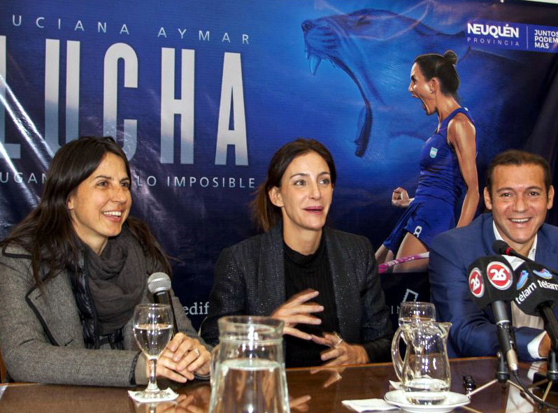 El mandatario neuquino y la deportista brindaron esta mañana una conferencia de prensa. Por la tarde participarán en Centenario de la inauguración de una cancha de sintético y por la noche, se presentará el documental “Lucha, jugando con lo imposible”.