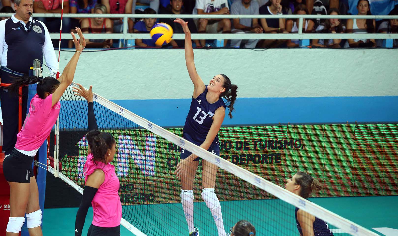 Con el bloqueo como gran arma (tocando todas las pelotas de ataque rival), Argentina fue estirando la diferencia y otro ataque de la armadora Yael Castiglione puso el 25-16 y el 2-0 en el tablero.En el tercer set, Venezuela tuvo reacción y con mucha concentración se puso adelante 8-5 en el primer tiempo técnico.