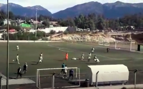 La imagen de la patada brutal que el defensor del club Las Piedritas Enzo Álvarez le aplica en el suelo a un jugador del Club Deportivo Angostura el sábado 13 de marzo en la cancha de fútbol Andrés Martín causó mucha indignación no solo en Villa La Angostura.