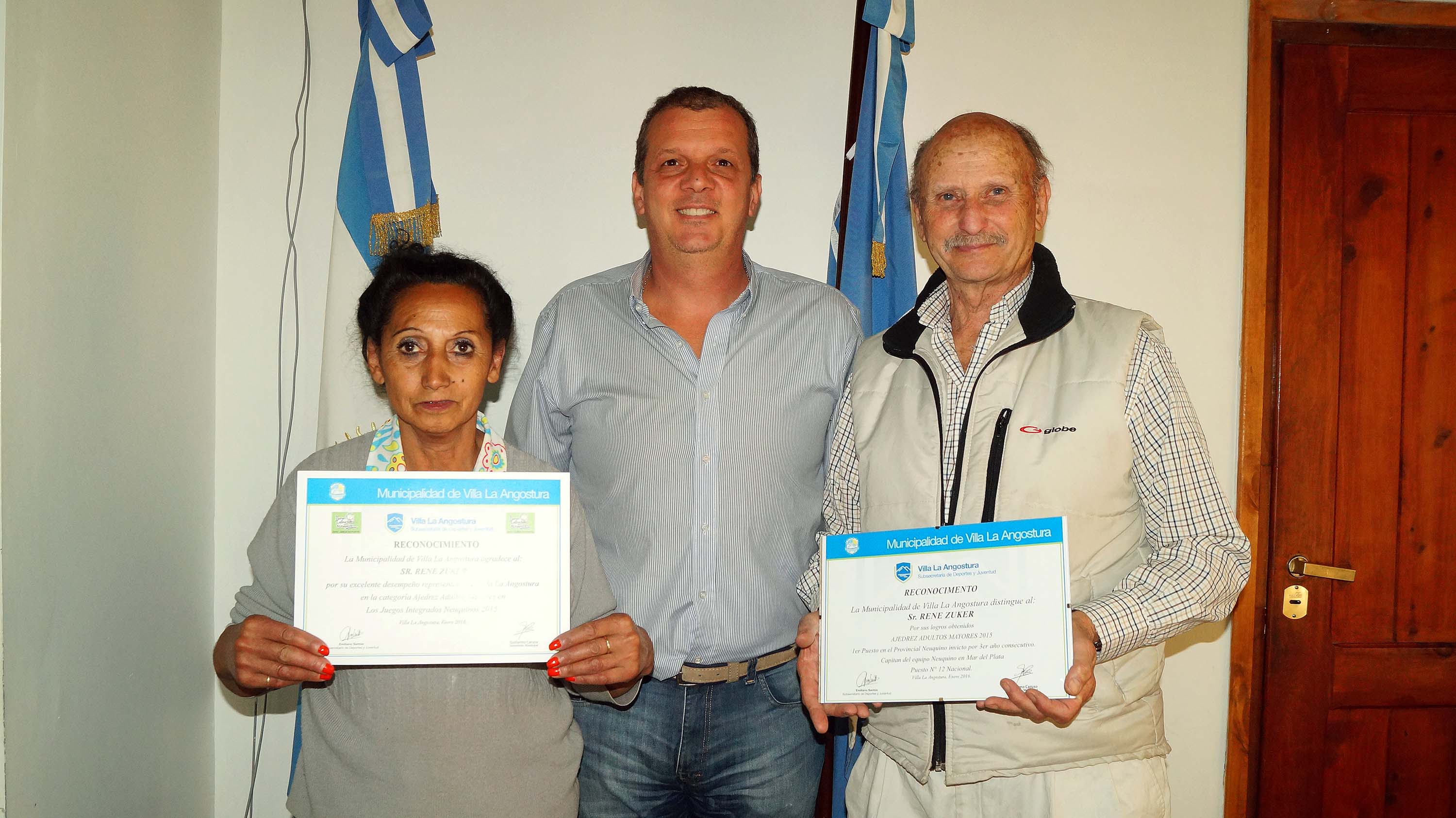 El intendente Guillermo Caruso recibió al destacado vecino René Zuker, junto a su esposa, para hacer entrega de un certificado de reconocimiento a su participación con gran éxito en los torneos provinciales y nacionales de ajedrez, representando destacadamente a Villa La Angostura.