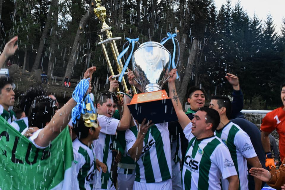 Es la séptima vez que los albiverdes se quedan con el título de campeón en la Liga Quetrihue desde que se reactivó la actividad en la cancha municipal del Calafate.