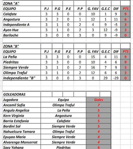 Se completó la tercera fecha del torneo que organiza el Club Independiente de El Mallín donde Calafate lidera la Zona A, mientras que La Peña y Piedritas lo hacen en la Zona B