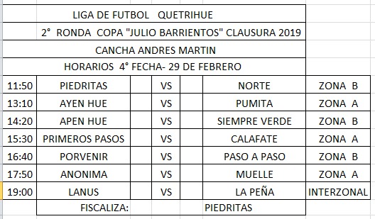 Este sábado se reinicia la Liga Quetrihue el Campeonato Clausura. Quedan solo cuatro fechas de la segunda ronda y tres fechas clasificatorias, cuartos, semi y la final. Detalle de los partidos.