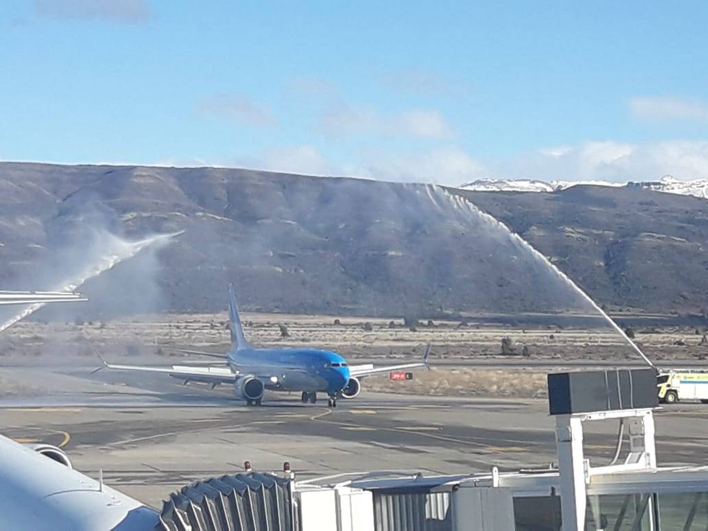 El nuevo avión que Aerolíneas Argentinas incorporó a su flota fue bautizado ayer por la tarde en la pista del aeropuerto de Bariloche, con el ministro de Transporte de la Nación Guillermo Dietrich a bordo.