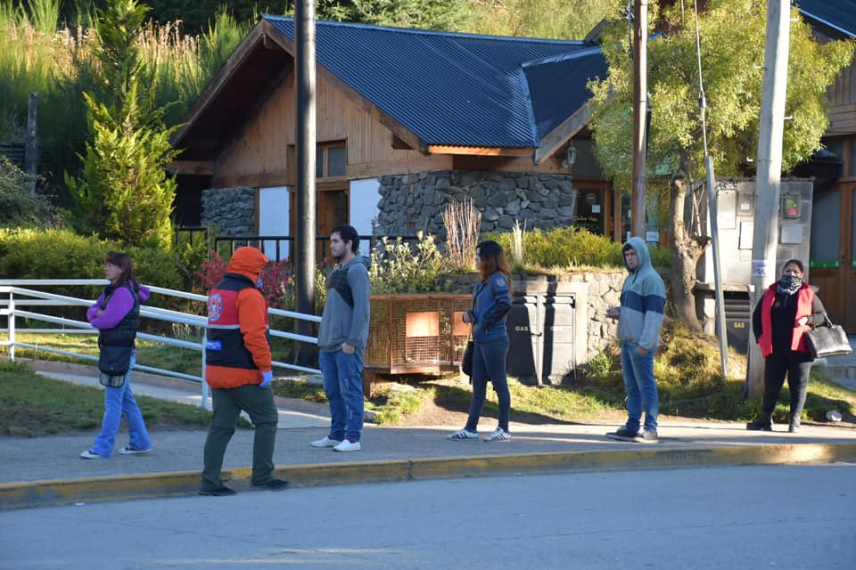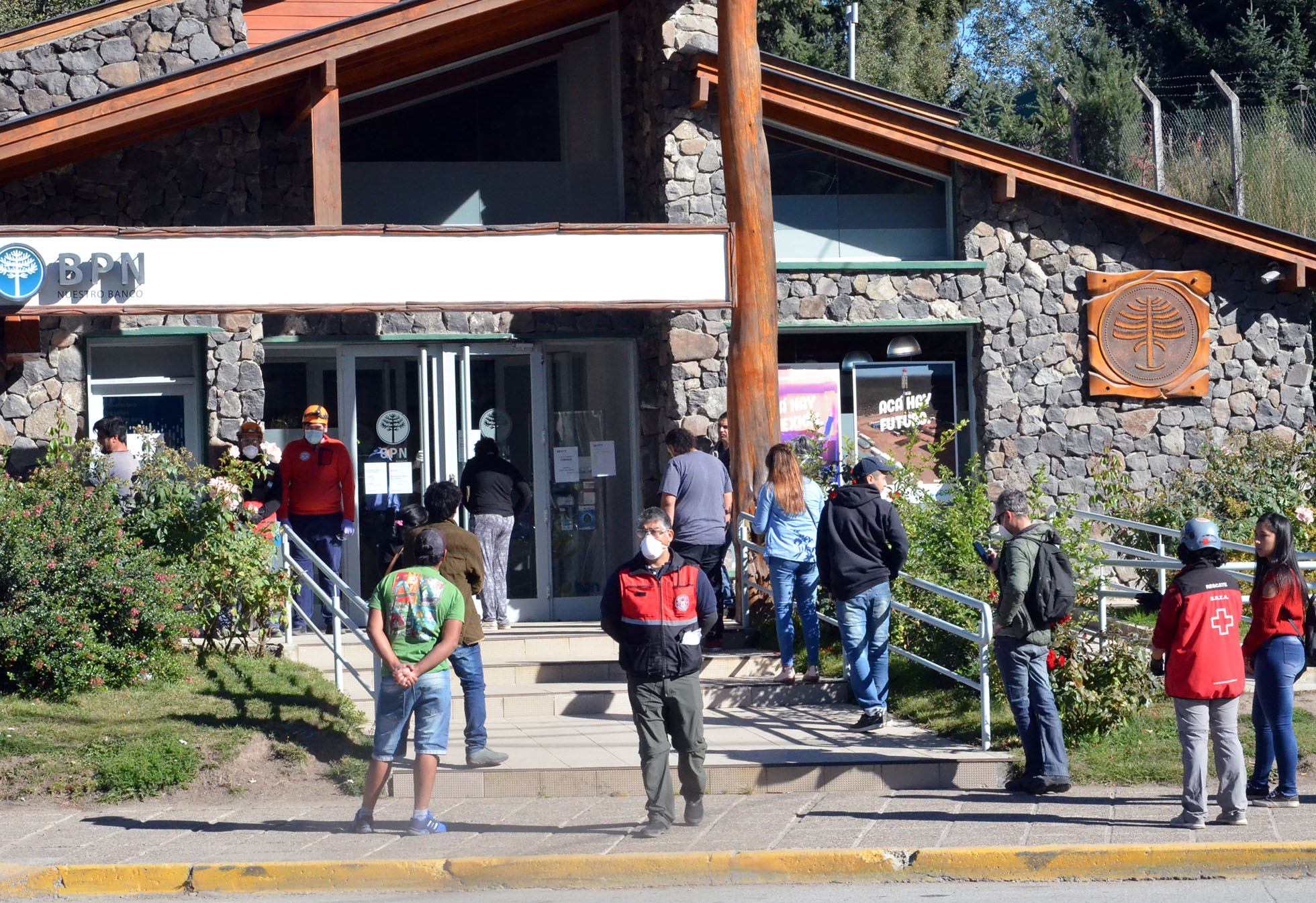 Será para pagar jubilaciones, pensionados y beneficiarios sociales. En Villa la Angostura (foto) había gente haciendo cola desde las 7 de la mañana.