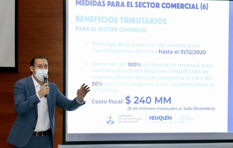 Entre los beneficios tributarios para el sector comercio se encuentran la prórroga de la exención del mínimo para Contribuyentes Directos hasta el 31 de diciembre de este año; exención del 100% del impuesto mensual para contribuyentes del Régimen Simplificado de Ingresos Brutos para las categorías A y B y del 50 por ciento para las categorías C a G, también hasta el 31 de diciembre de este año. El costo fiscal será de 240 millones de pesos (40 millones mensuales entre julio y diciembre).