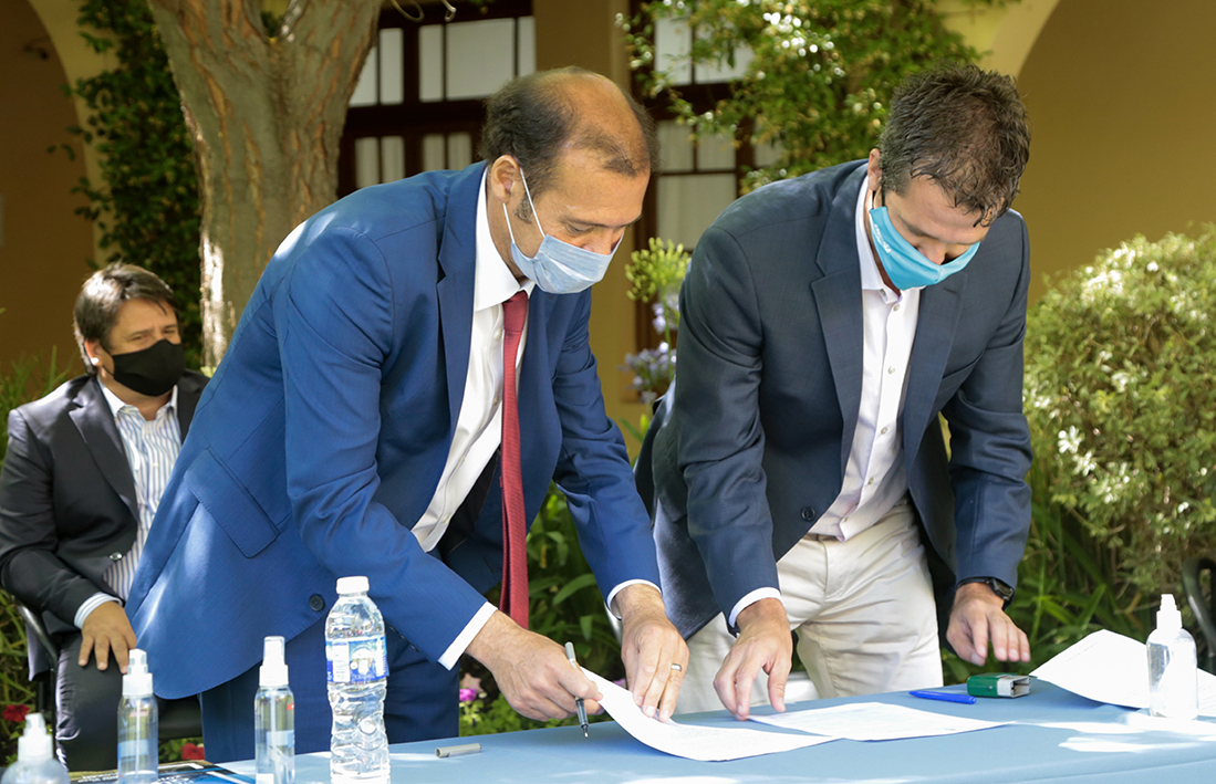 Junto a Cresto, Gutiérrez firmó también un convenio marco para implementar el programa Dignificar, que permitirá construir 2000 unidades sanitarias básicas en distintos puntos de la provincia.