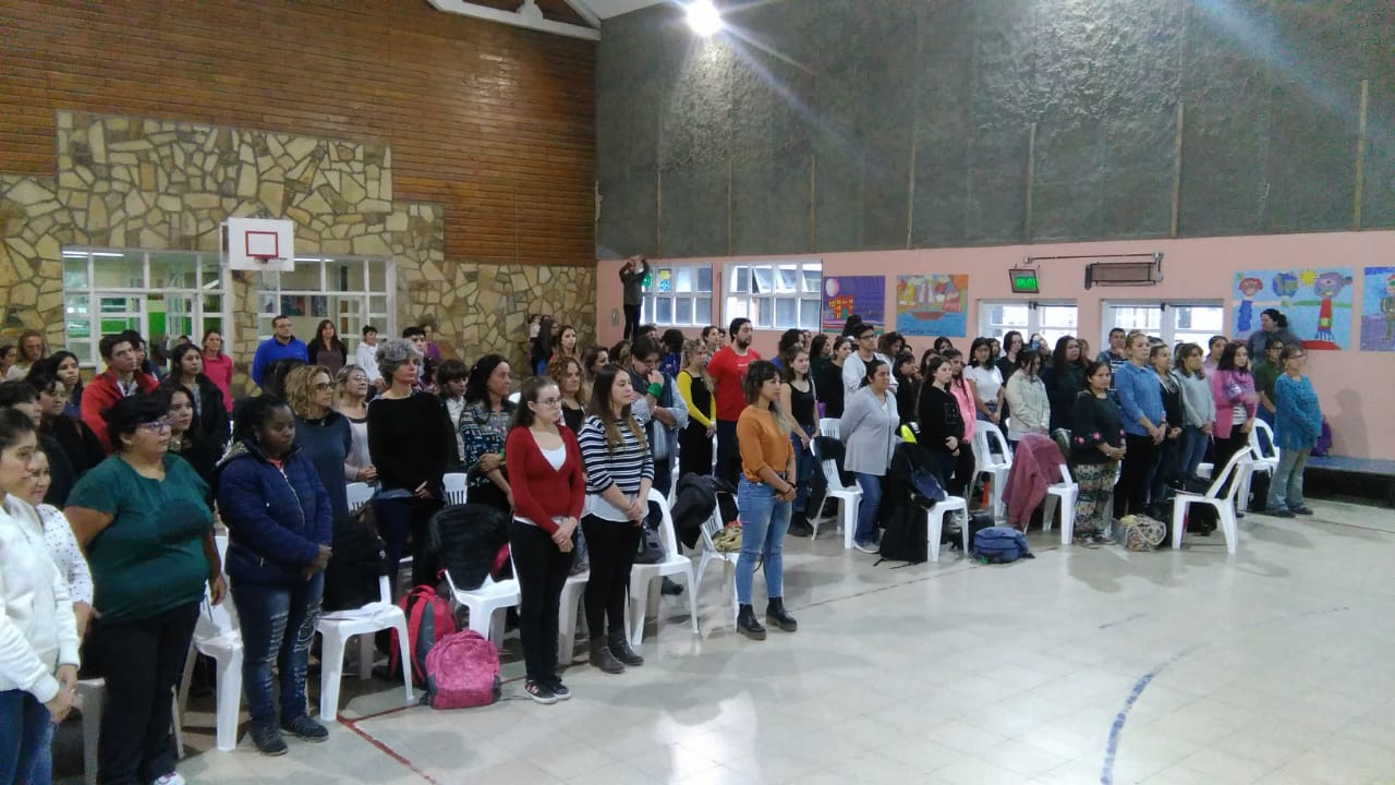 El acto de apertura del ciclo lectivo se hizo en el Salón de Usos Múltiples (SUM) de la Escuela 353, donde funciona el IFD hasta que tenga su edificio.