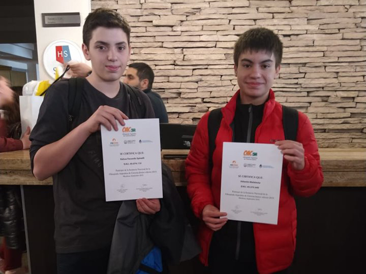 Fueron Valentín Malatesta, quien logró 3° Mención de Honor, y Rahue Spinelli, quienes fueron preparados por la profesora Graciela Esquivel.
