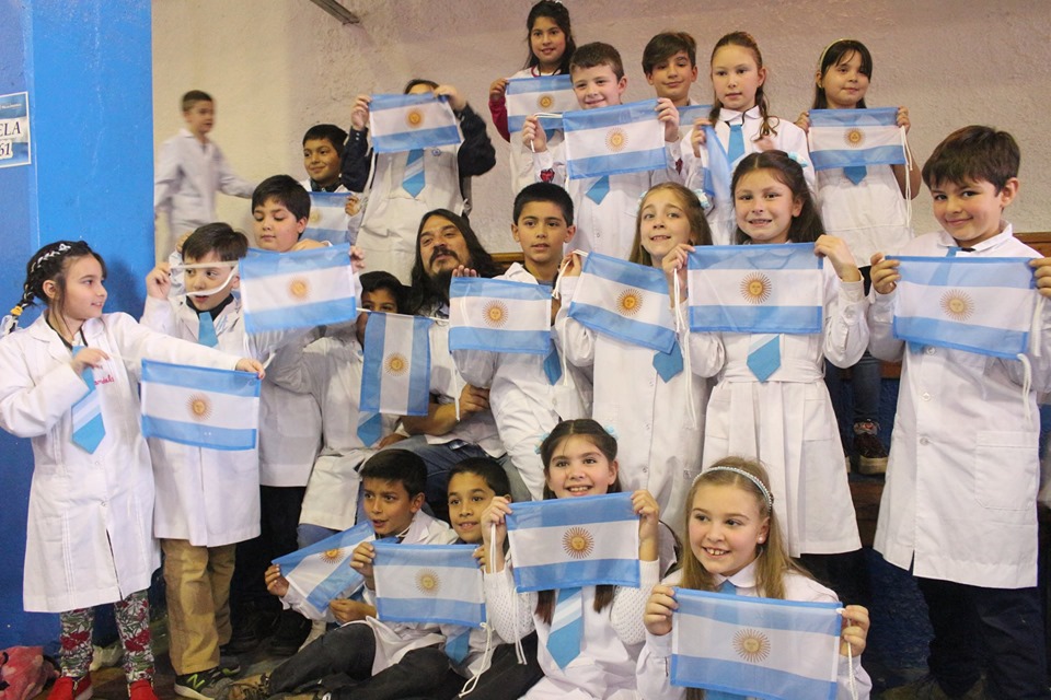 En la oportunidad, la docente Roxana Hensel brindó las palabras para que cerca de 300 niños prometieran lealtad a la bandera Argentina.