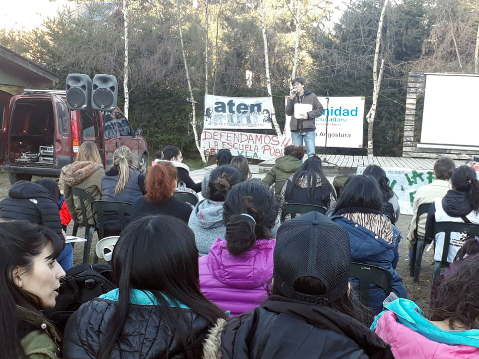 Ayer más de un centenar de personas se congregaron para participar de la clase pública. El dirigente de ATEN Omar Lara señaló que a nivel local el reclamo sigue por la falta de porteros y que las partidas para el refrigerio de los alumnos lleguen a tiempo.