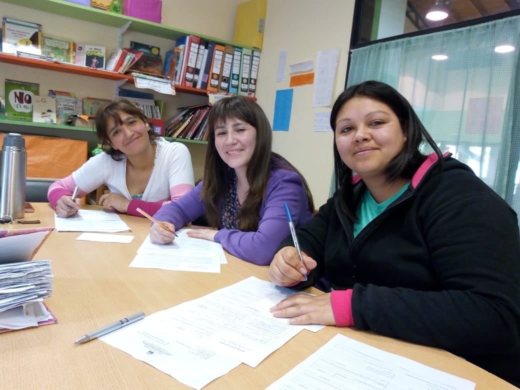 “El Jardín 57 le da la bienvenida a sus tres nuevas auxiliares (de servicio)”, informó la directora del establecimiento educativo de Villa La Angostura, Paula Gómez.