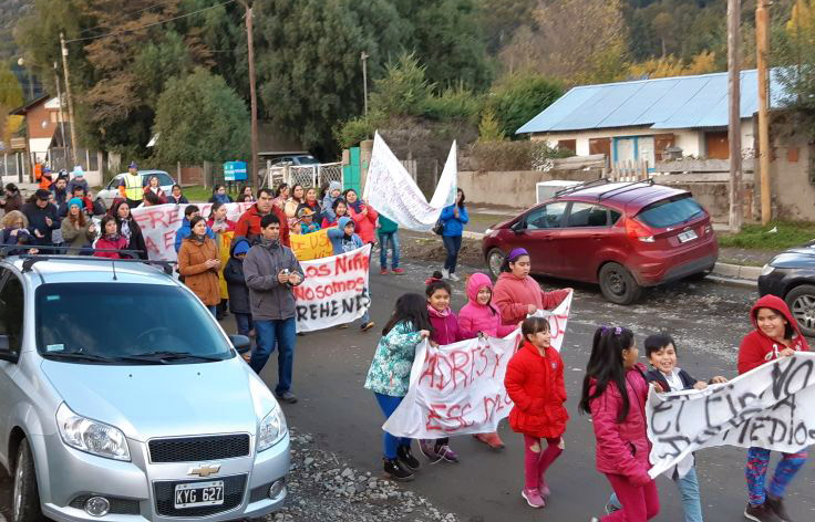 Un grupo de padres y alumnos de la Escuela 186 decidieron ayer volver a marchar partiendo desde el establecimiento hasta el centro de la localidad, reclamando que los niños vuelvan a clases, ante el conflicto docente que continúa al no haber un acuerdo con el gobierno provincial.