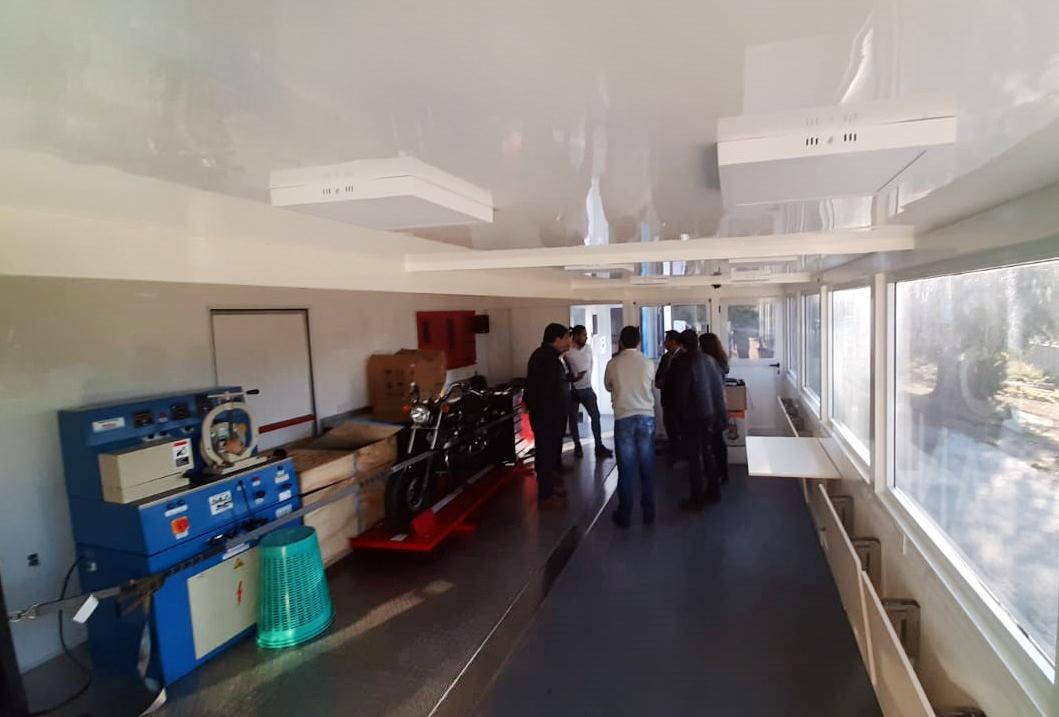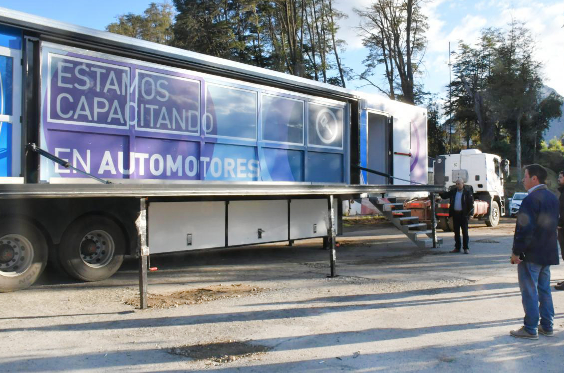 Esta mañana ingresó a la localidad de Villa La Angostura por primera vez, luego de la gestión de la Ministra de Educación de la Provincia de Neuquén Cristina Storioni y el Intendente Fabio Stefani, el Aula Taller Móvil orientada en la capacitación en mecánica automotriz y de motos.