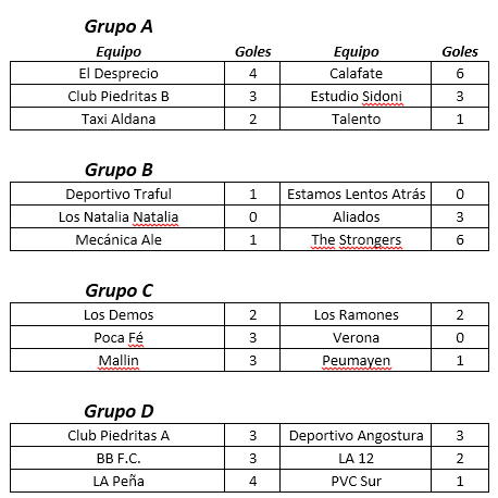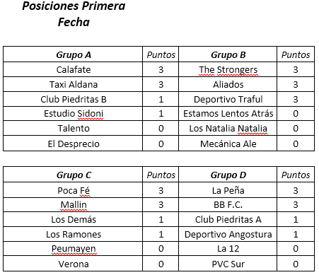 Los resultados de la primera fecha fueron los siguientes:
