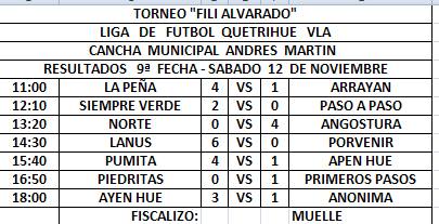 Una nueva fecha se completó este sábado del apasionante torneo local que tiene en juego la Copa "Fili Alvarado". Y es que al cumplirse la 9° fecha el Deportivo goleó 4 a 0 Norte y nuevamente recuperó la punta al aprovechar que Muelle tuvo fecha libre.