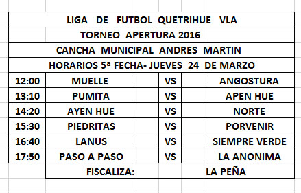 Una fecha se jugará este jueves y otra el sábado, recuperando la que se suspendiera el pasado sábado por problemas administrativos. Ambas fechas serán en la cancha municipal del Calafate Adrián Mercado.