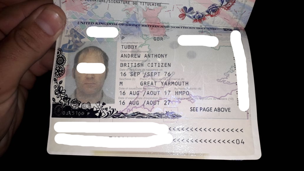 Por tal motivo, se le solicitó la documentación que avalara su identidad y este entregó un pasaporte de nacionalidad británica, con egreso de la república de Chile el día 27 de marzo pasado.