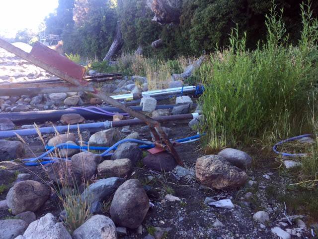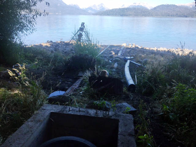 El tendido corresponde a uno de los sistemas municipal de tomas de agua -otro se encuentra en el Lago Correntoso- desde donde las bombas sumergidas abastecen a la cisterna ubicada en Lomas del Correntoso, que después distribuye por la red el agua potable a la mayoría de los barrios de la localidad.