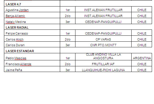 La competencia se realizó el pasado fin de semana en Puerto Octay donde participaron en la categoría Optimist, Julieta Pascolat, Federico Pascolat y Joaquín Fasce, mientras que en la categoría Laser lo hizo Pablo Mascias.