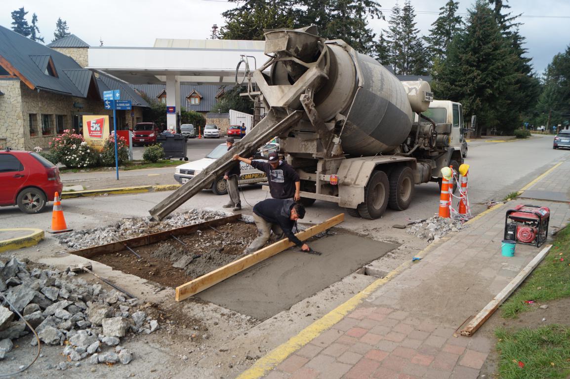 Sobre la avenida Nahuel Huapi una cuadrilla contratada por el municipio realiza el hormigonado y  pavimento para la reparación en esta zona donde circula una gran cantidad de vehículos.