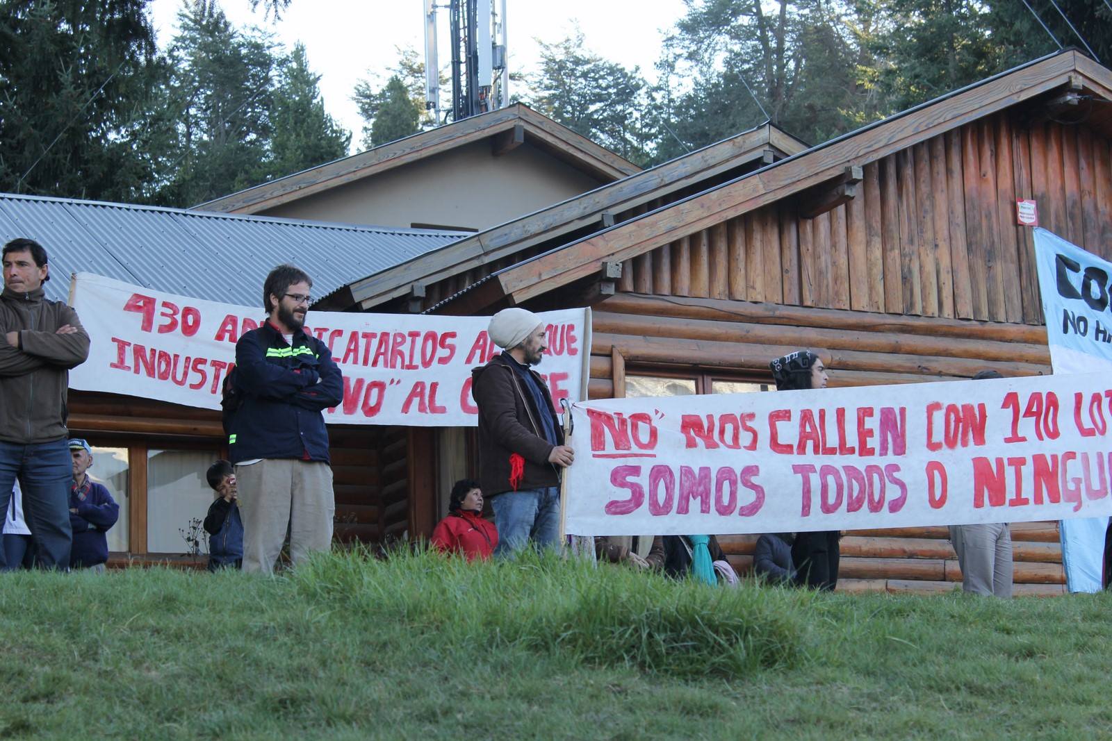 "La Seccional Los Lagos del Movimiento Popular Neuquino y la Gestión de Gobierno, manifiestan el total y absoluto repudio a los actos intimidatorios realizados por un grupo de beneficiarios que lejos de mostrar su satisfacción y gratitud por ser parte de un inédito plan municipal de loteo social, que esta gestión ha decidido en pos de dar solución al problema habitacional existente en la localidad, frente a la ausencia del Estado Nacional y Provincial, que actúan de manera premeditada a fin de boicotear las acciones realizadas".