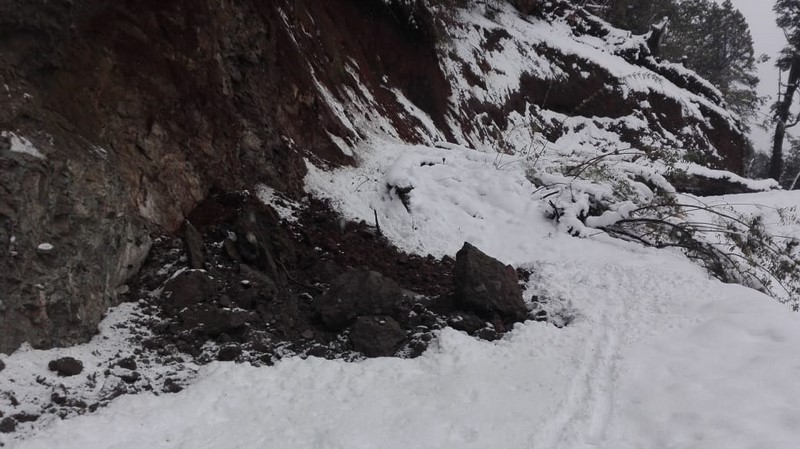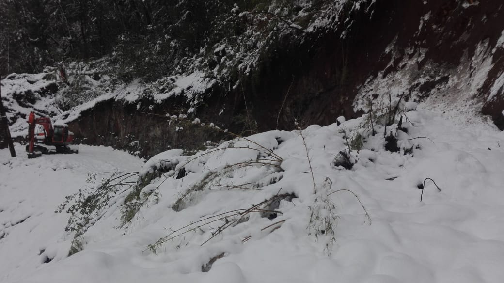 “Ayer luego de la intensa nevada los konas del resguardo del sector Pichunko, en un recorrido que realizaron notaron un importante desmoronamiento de tierra, rocas y plantas nativas a unos escasos metros de donde se encuentra la maquina al fondo del camino de la zona roja”, advirtieron en un comunicado que difundieron hoy por la mañana.