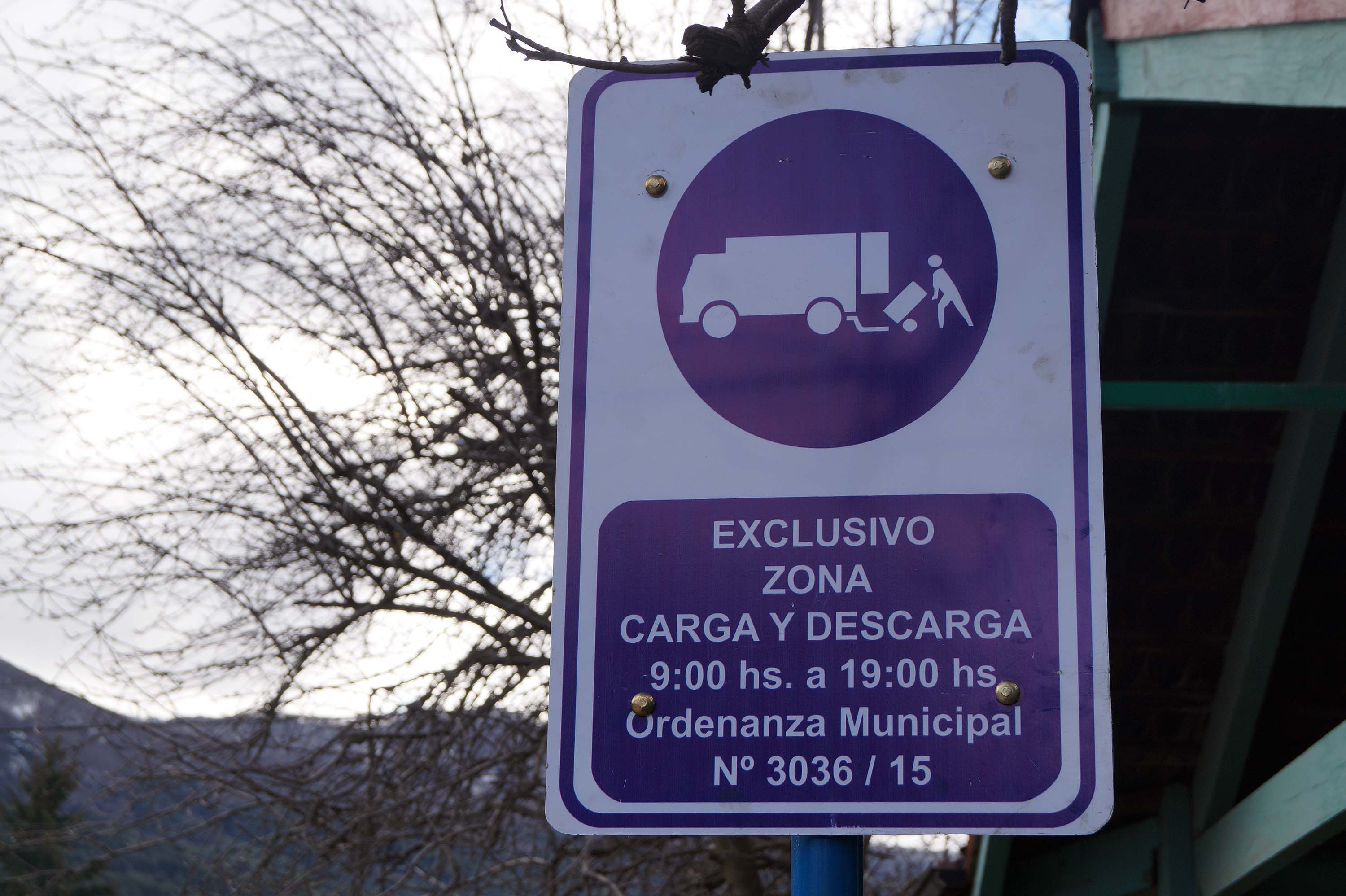 La municipalidad colocó los carteles de los sectores en la avenida Arrayanes, donde se autoriza por 30 minutos a descargar en el horario de 9 a 19 hs.