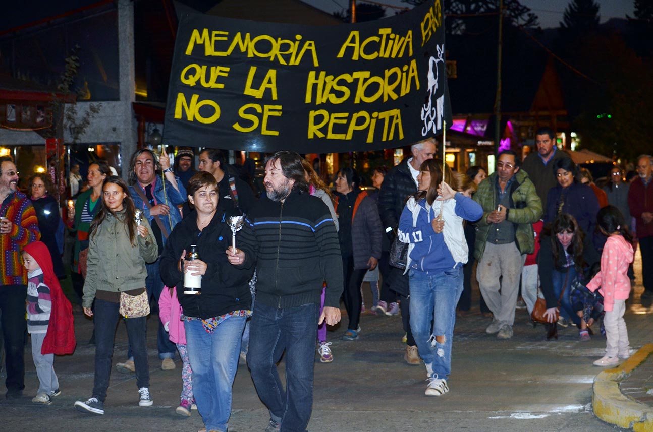 Además del reclamo en pancartas con referencias a "Por la Memoria,Verdad y Justicia" o "Memoria activa para que la historia no se repita", los manifestantes llevaron velas recorriendo el centro de la localidad. Todo el acto se realizó en respetuoso silencio y sin que se produjeran incidentes.