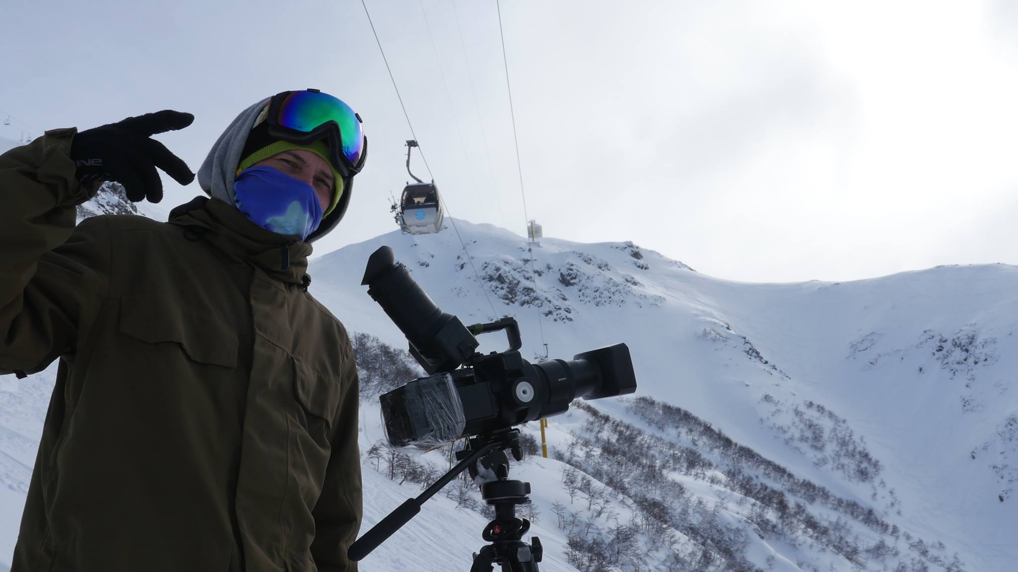 Juan Stadler filmando en el centro de esquí Cerro Bayo.