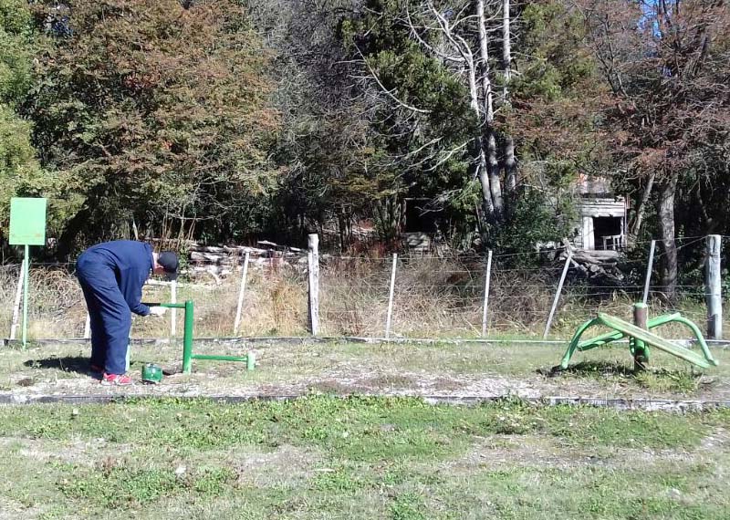 La Secretaría de Planificación realiza el mantenimiento y pintura de las estaciones saludables de la ciclovía que conecta el centro de la localidad con la ruta de los 7 Lagos.