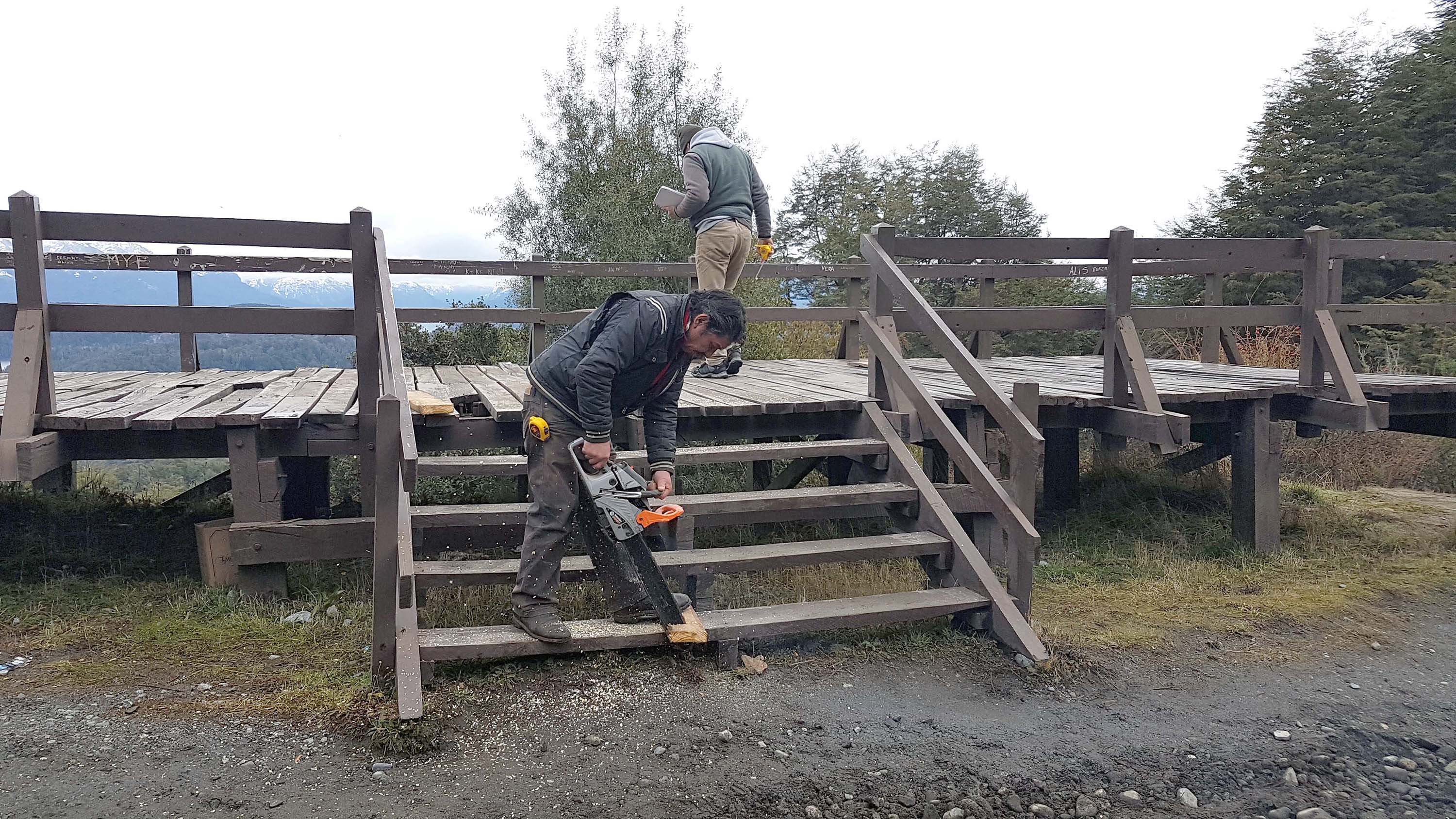 Se trata de tareas de reparación en tablas y tirantes de madera, además de desmalezamiento en los sectores aledaños de estos puntos tan visitados por los turistas.